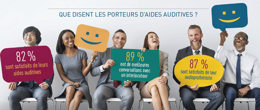 65 % des porteurs d’aides auditives auraient souhaité être appareillés plus tôt. Pour 89 % d’entre eux, leurs conversations avec une personne se révèlent satisfaisantes, et le taux atteint 84 % pour l’écoute de la musique. Dans le cadre d’une activité professionnelle, 95 % déclarent que leurs aides auditives leur sont utiles dans leur métier.