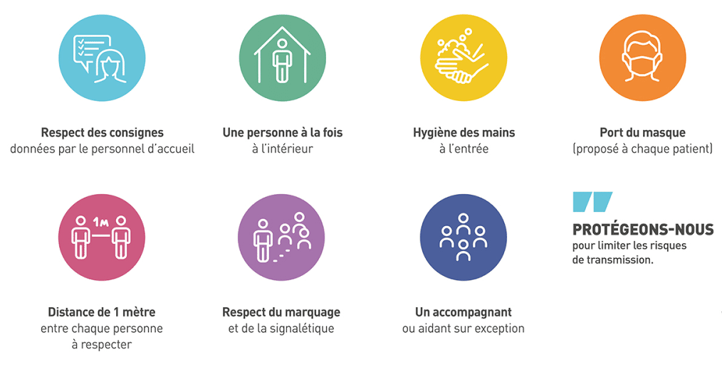 Le nombre de rendez-vous par jour a été réduit pour limiter les croisements avec d’autres patients. Une seule personne à la fois peut rentrer dans le centre. De plus, nos centres sont équipés de marquage au sol, de signalétiques et nos équipes sont là pour vous guider.