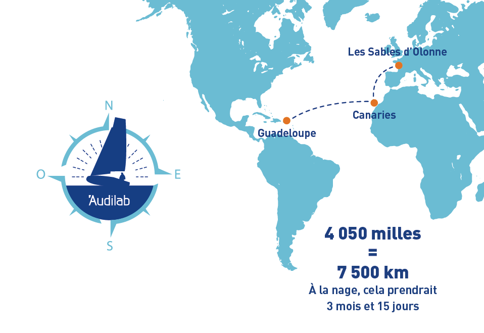 - La seconde étape, est plus longue : la traversée de l’Atlantique pour relier Les Canaries à La Guadeloupe, les meilleurs marins mettent environ 15 jours. Le classement se fait au temps cumulé des deux étapes.