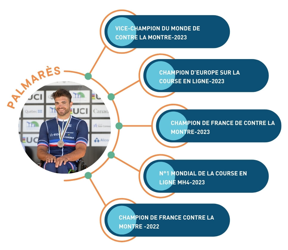 Mathieu Bosredon, né le 23 novembre, est devenu paralysé des membres inférieurs à 4 ans suite à un hématome médullaire. À 14 ans, il s’engage dans le paracyclisme et représente désormais la France au niveau international, se spécialisant dans le handbike pour les courses en ligne, et en longue distance.